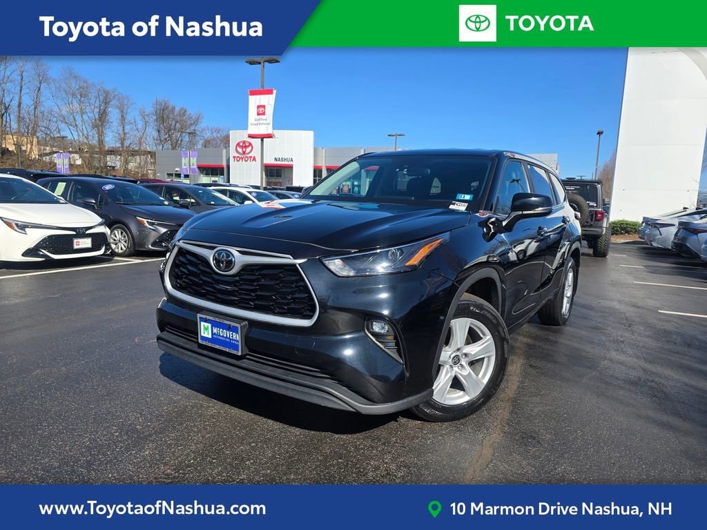 Recent Arrival! Toyota of Nashua is proud to present this McGovern Certified Midnight Black Metallic 2023 Toyota Highlander LE FWD 2.4L I4 PDI Turbocharged DOHC 16V LEV3-SULEV30 265hp 8-Speed Automatic CARFAX One-Owner.